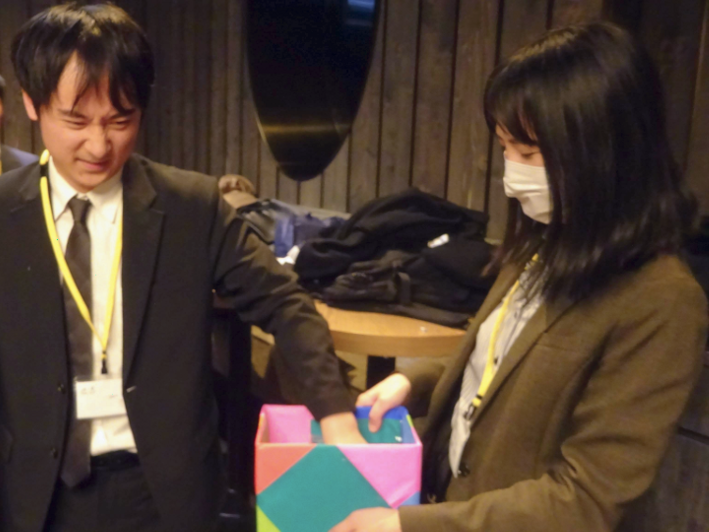 パーティの最後には、余興として「忘年会運試し」くじ引きを実施しました。景品は、来年の幸運を願う縁起物でした!