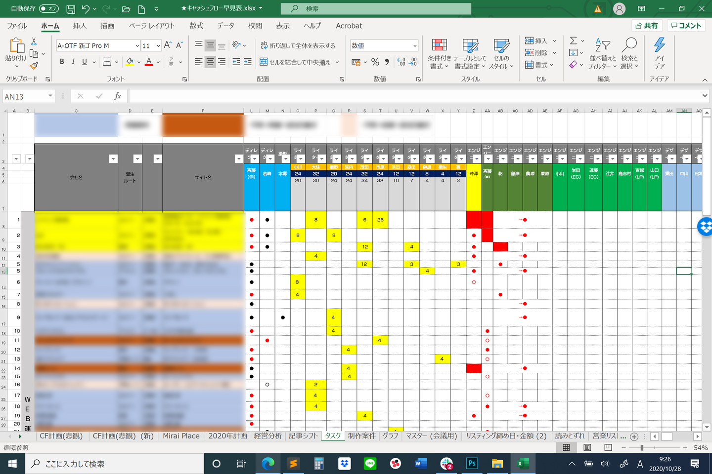 各案件と約35名のメンバーの割り振り、1社づつレビューしてゆきます。