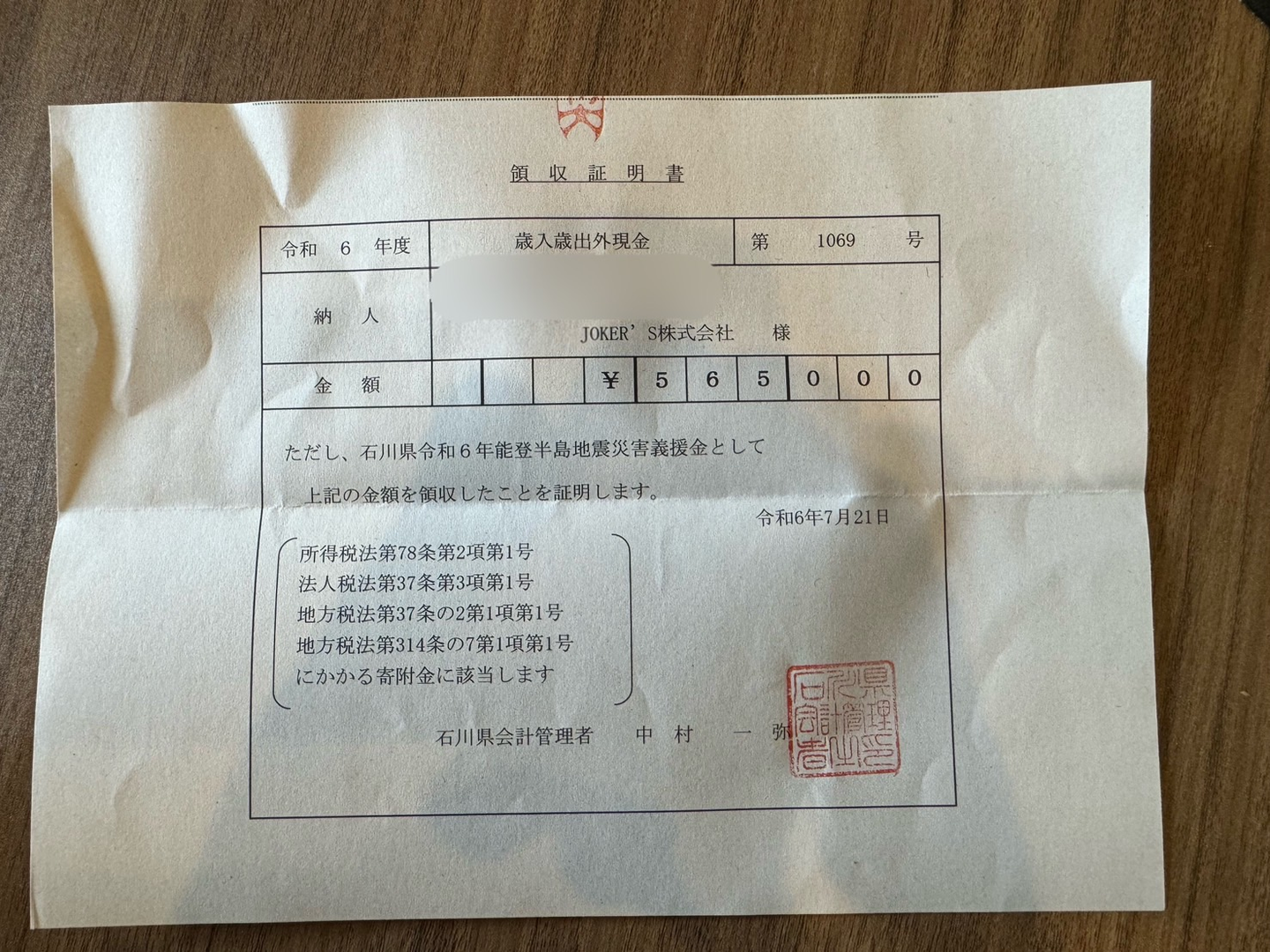 集まった寄付金もしっかりと能登半島地震に寄付させていただきました!