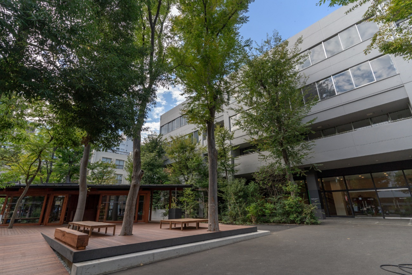 ▲東京メトロ東陽町駅より徒歩2分の好立地ながら、緑豊かで心地よいオフィスです。