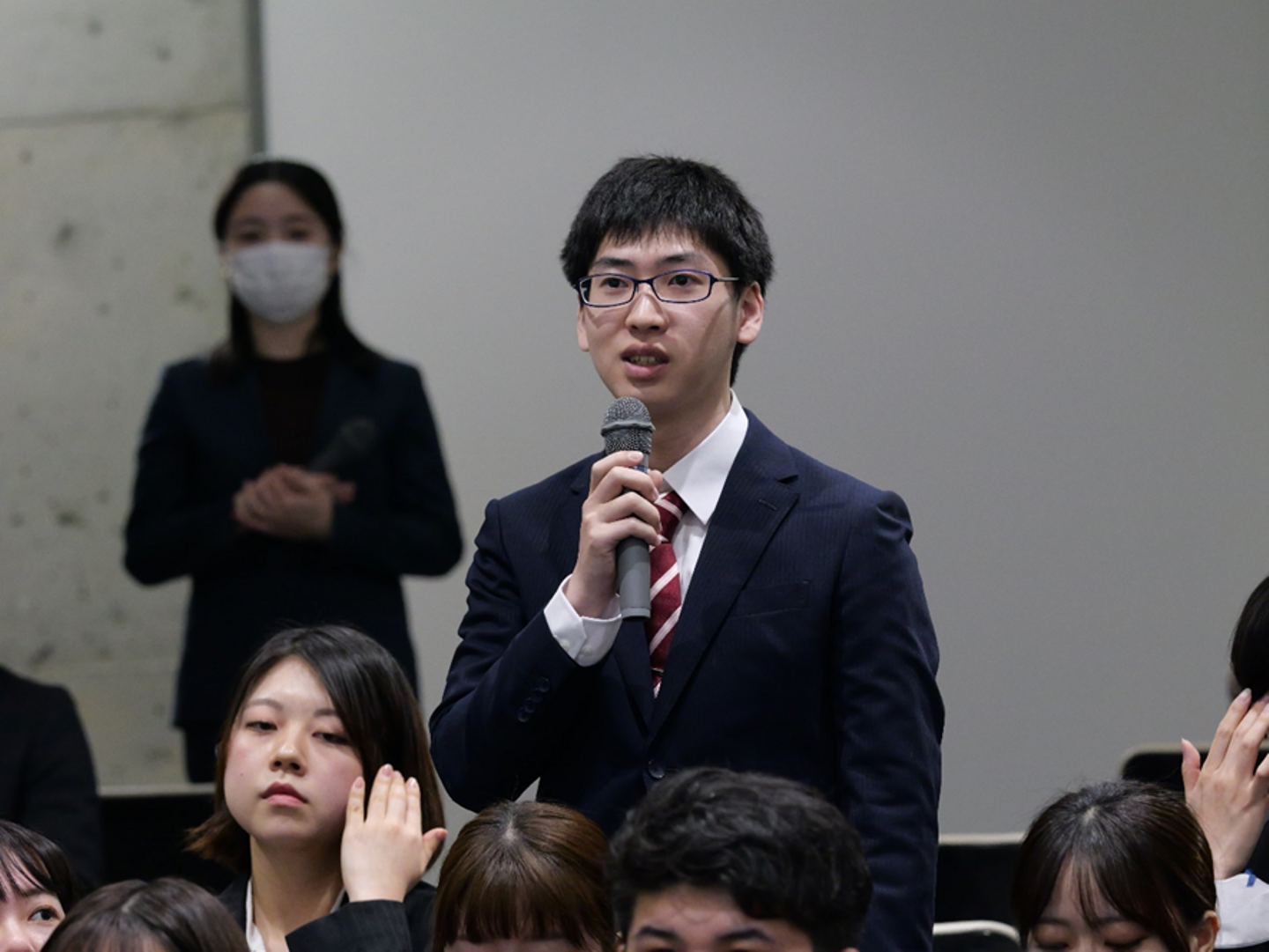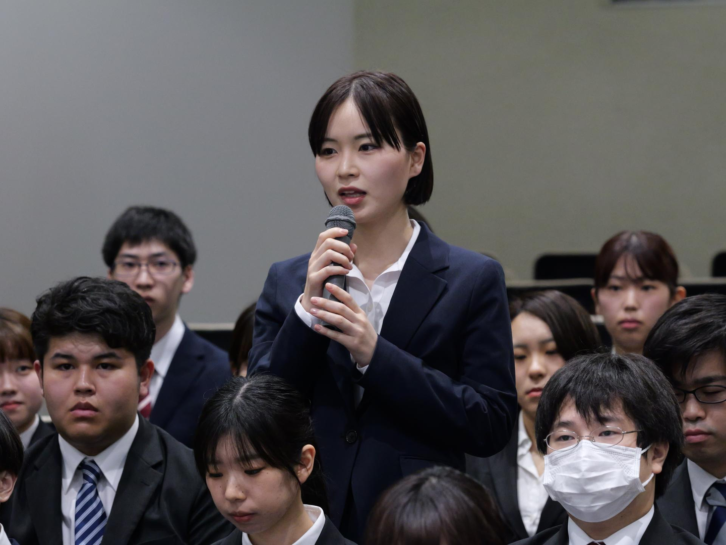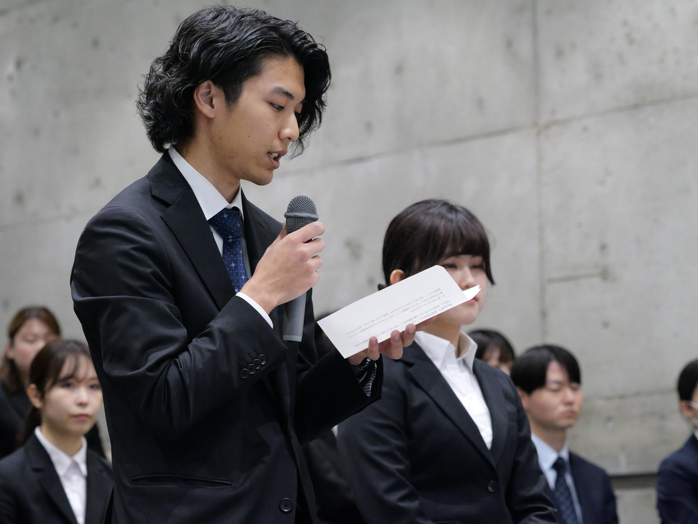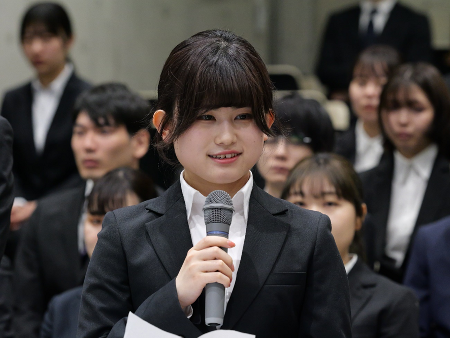 「本日の『新入社員代表』という重要な役割を聞いたときは、驚きと共に不安を感じました。ですがグループミッション『どこにもないふつう』を思い出し、自らが何ら変わりない『ふつう』の一例としてこの場に立っているのではないかと考えることで、安心感を得ることができました。