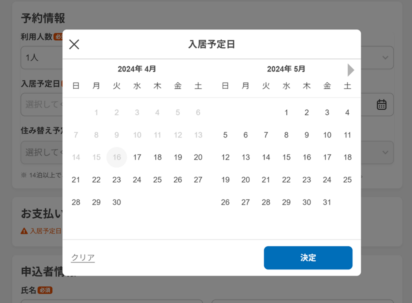 サブスくらしはホテルやマンスリーマンションの予約申し込みが出来るサイトなので、入居希望日を入力するためのカレンダーが必要なのですが、そのカレンダー機能の実装を入社1年目で手掛けたことです。