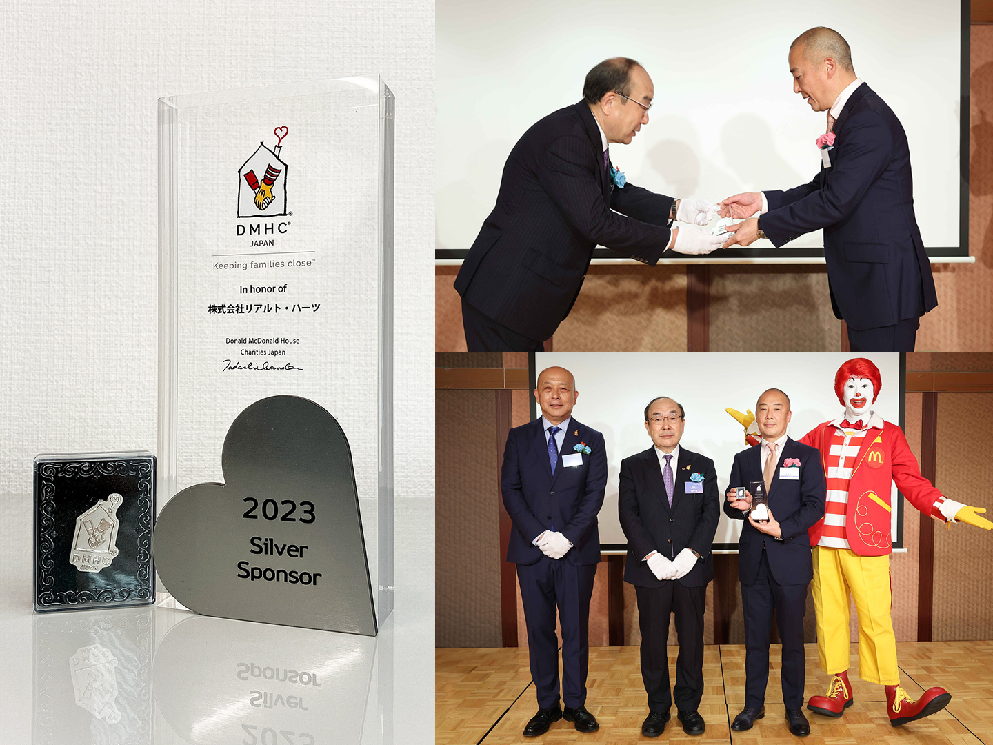5月28日(火)ヒルトンホテル東京で開催された、公益財団法人ドナルド・マクドナルド・ハウス・チャリティーズ・ジャパン主催の「感謝の贈呈式」にて、リアルト・ハーツはシルバースポンサーとして盾とピンズの贈呈を受けました。