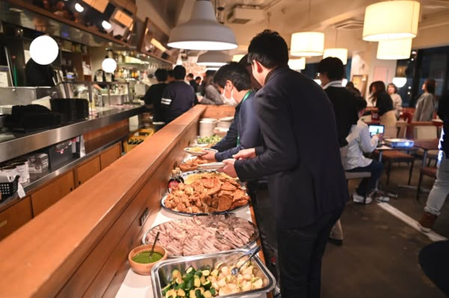 ビュッフェ形式のお店だったので、乾杯の後は皆さん料理を求め大行列🐍