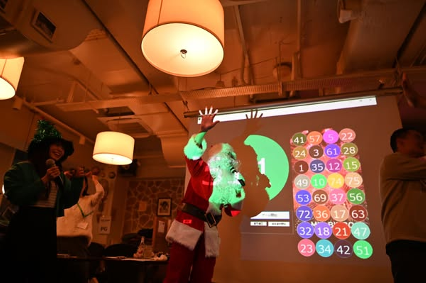 会場全体は大盛り上がり!リーチからなかなかビンゴにならなかったり、ビンゴになってサンタクロースと抱き合う姿など、皆さんの楽しそうな様子が見られました😊