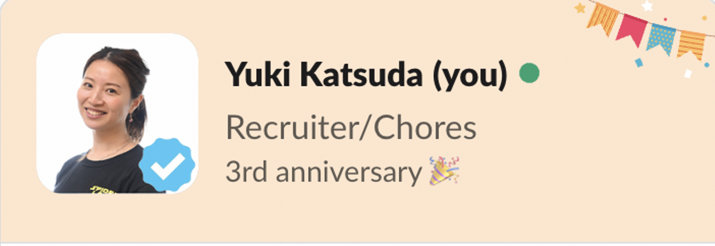 最近Slackの自分のプロフィールにカーソル合わせたら3周年おめでとう!という表示が出て嬉しかったです🎉