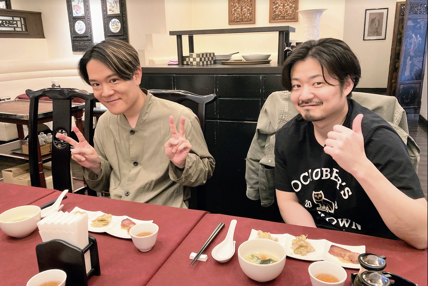 (チームランチの様子:CFO砂田/財務経理マネージャー 永瀬)