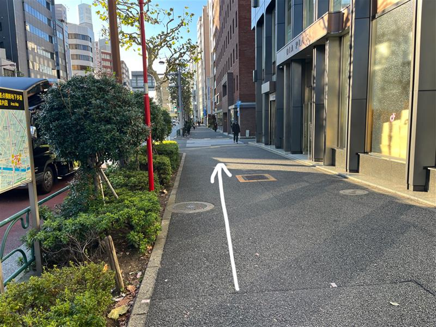 地上に上がったらそのままず~っとまっすぐ信号まで直進です!