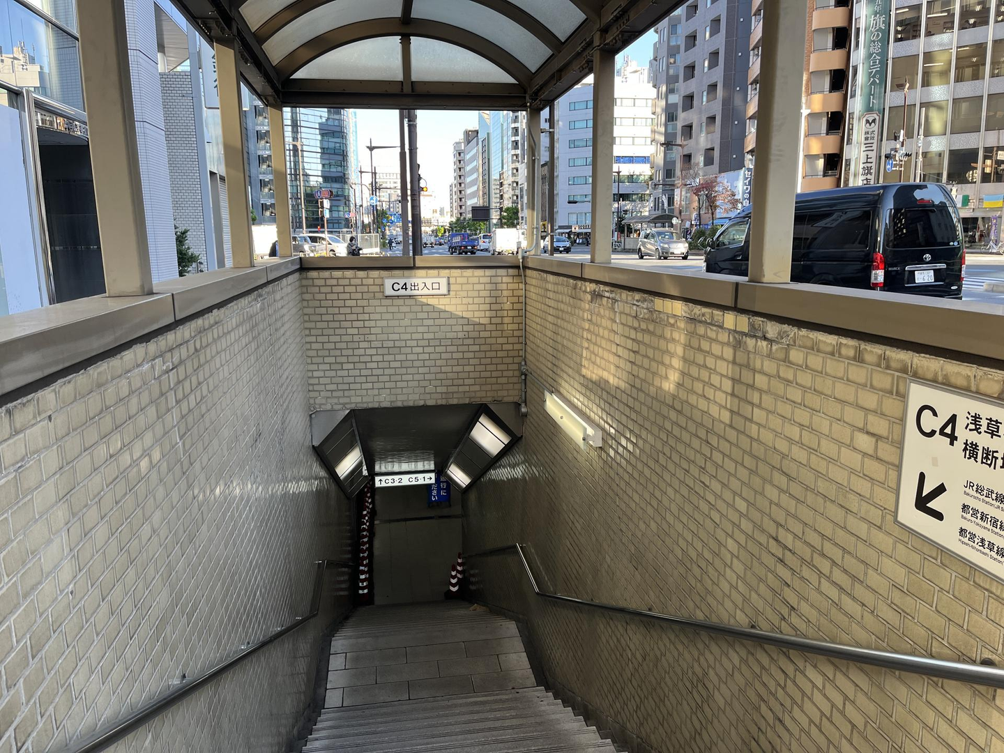 ①まずは改札をでたら「C4出口」をめがけて歩き、階段を上って地上に上がります!