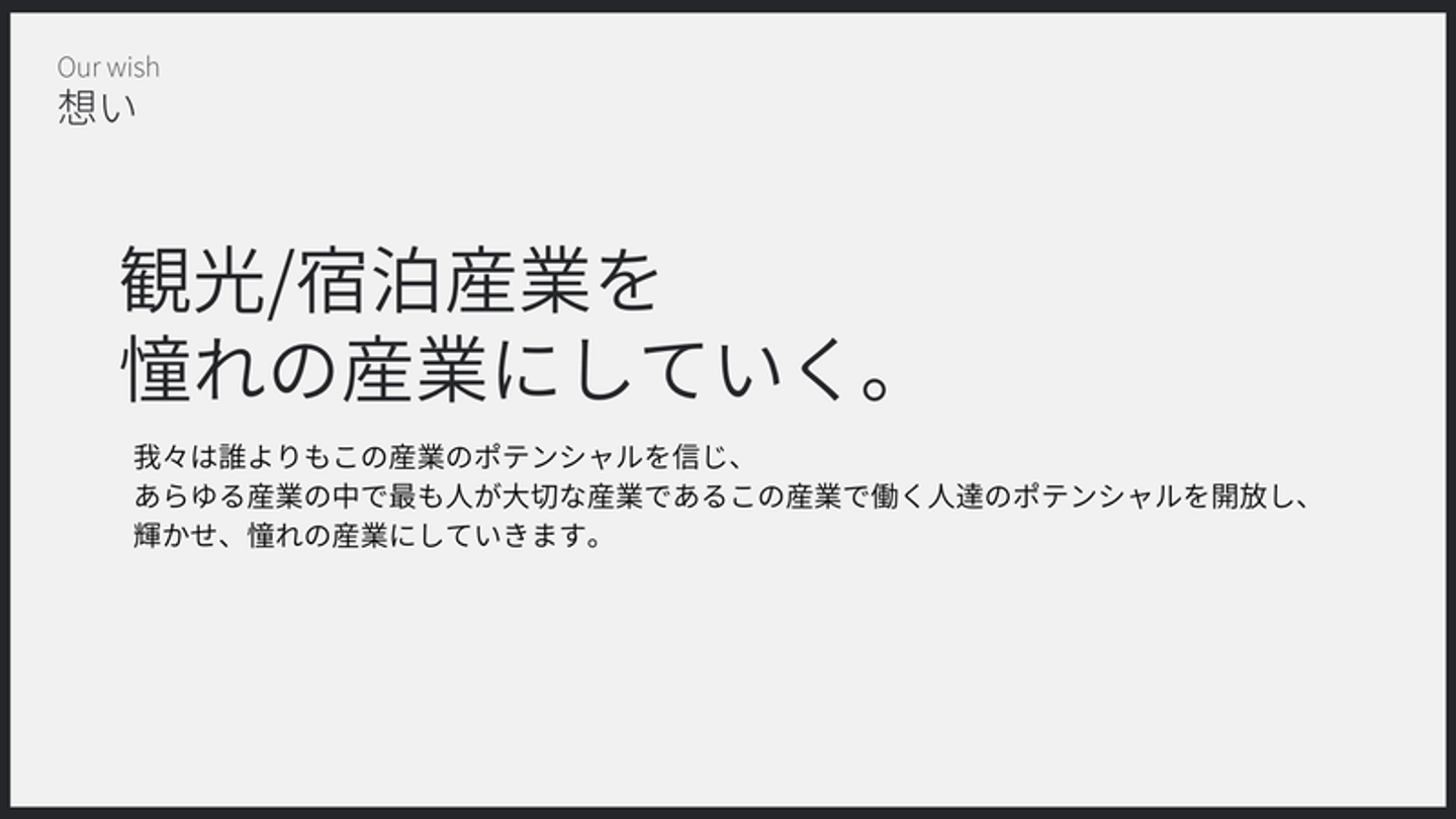 観光宿泊業界は見落とされがちですが、人がコアな価値を生み出している産業であり、人が付加価値を生む唯一無二とも言える産業です。