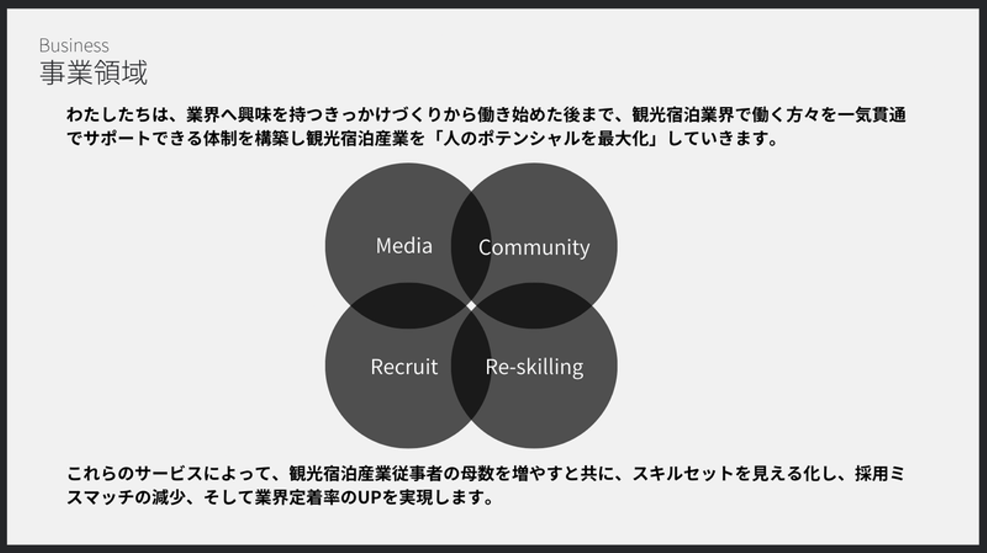 これらのサービスを展開していく予定で、その他もまずは宿泊業界に対して新規事業展開していく予定です。