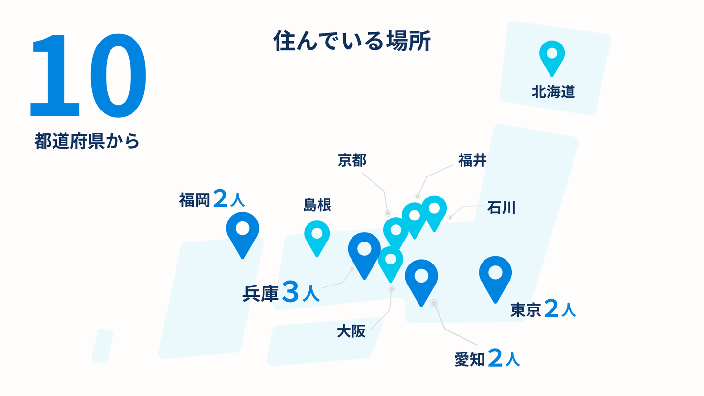 北は北海道から、南は福岡まで!全国各地にいるメンバーと働くことができるのはフルリモートならではですよね。