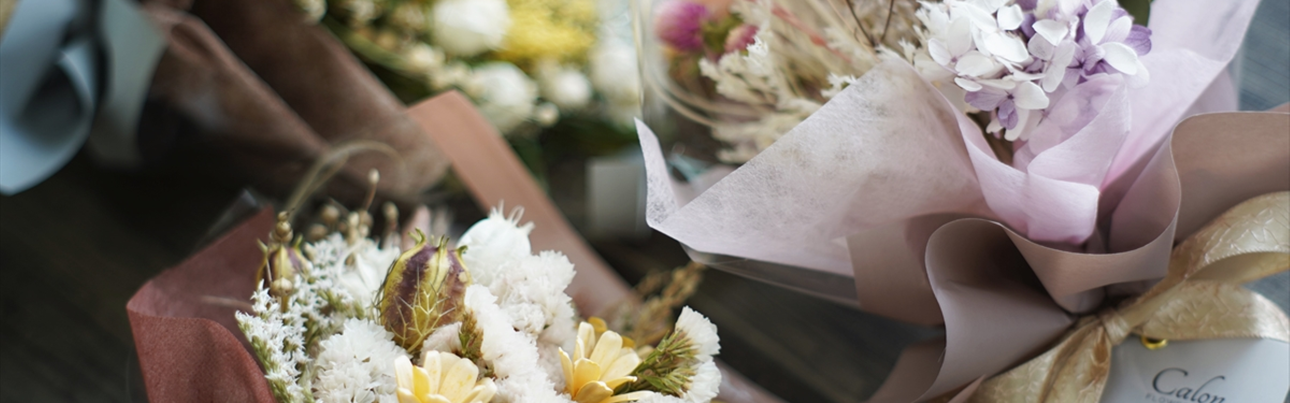 私たちは既存のドライフラワーに対するマイナスイメージを払拭し、フラワーギフトのスタンダードになるために新ブランド Calon DRY FLOWER を立ち上げました。