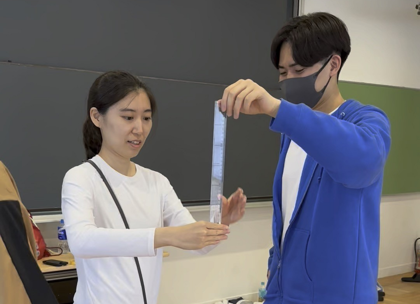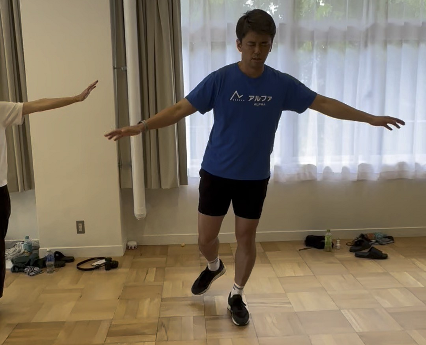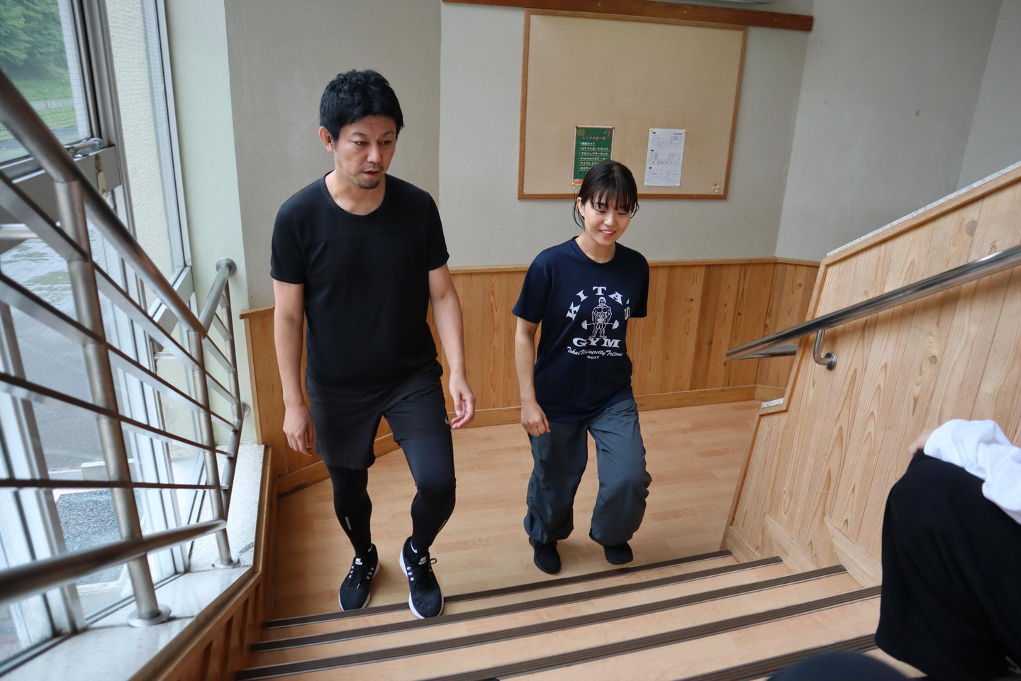 2日目は通常種目として、立ち幅跳び、反復横跳び、上体起こし、新種目として、階段昇降、閉眼片足立ち、棒反応時間(定規落とし)、肩甲骨の可動域を実施しました。