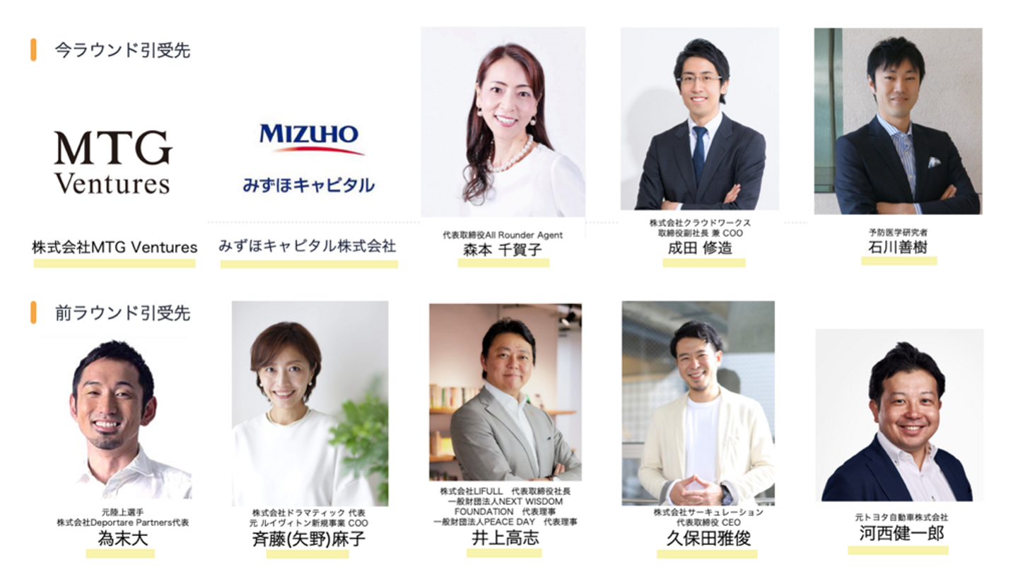 今回の資金調達では、多方面で活躍する専門家を投資家としてチームに招き、