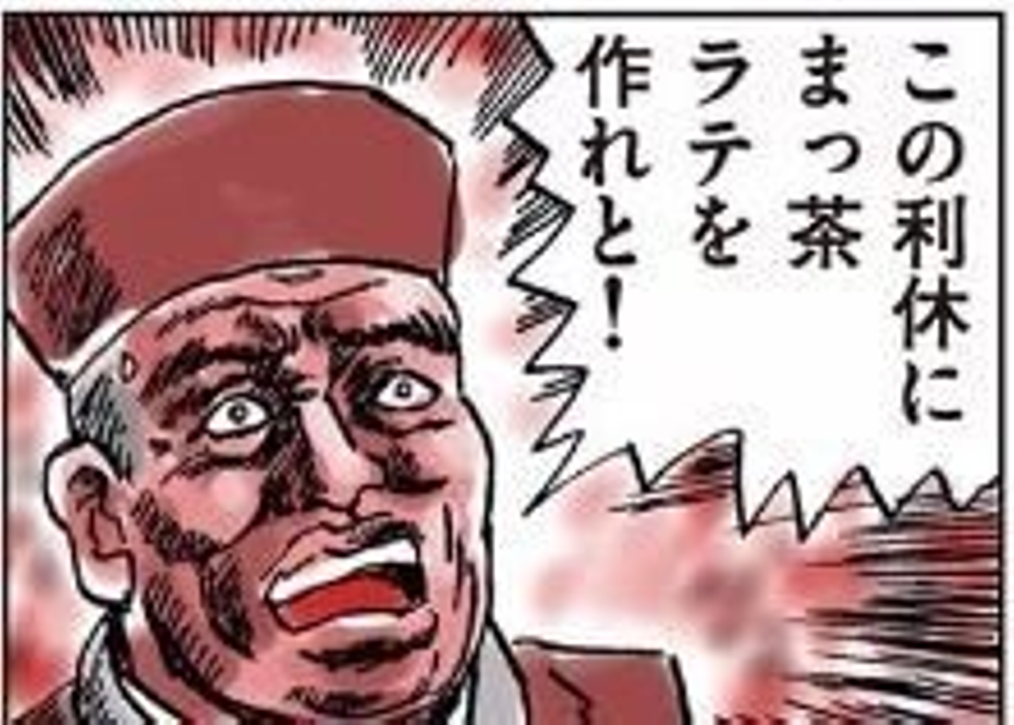 ほりのぶゆきの漫画『東京お侍ランド』(ウェブ漫画サイト『モバMAN』連載。最近連載が終了した)の「千利休 リキュバ遺文」という回の1コマである。このコマが確かに面白いのだが、このコマだけが一人歩きしているのを見ると「これだけだと『茶人千利休がまっ茶ラテを作るよう命令された』って認識されるのでは…?」とモヤモヤするので、このコマのある『東京お侍ランド』「千利休 リキュバ遺文」の話の流れを箇条書きで説明してみた。