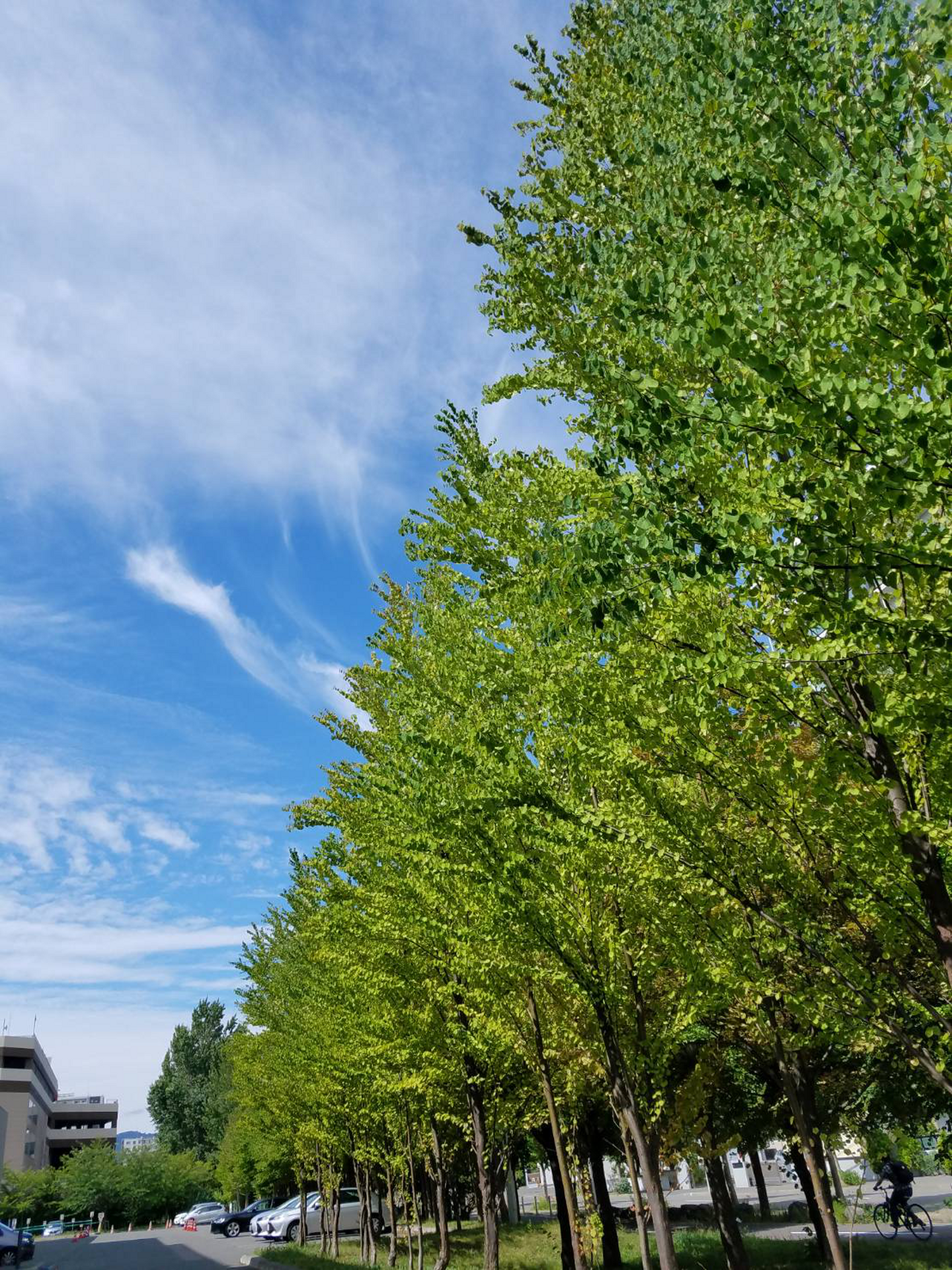 オフィスビルの裏側には、遊歩道があり、東札幌までのサイクリングロードに繋がっていて、