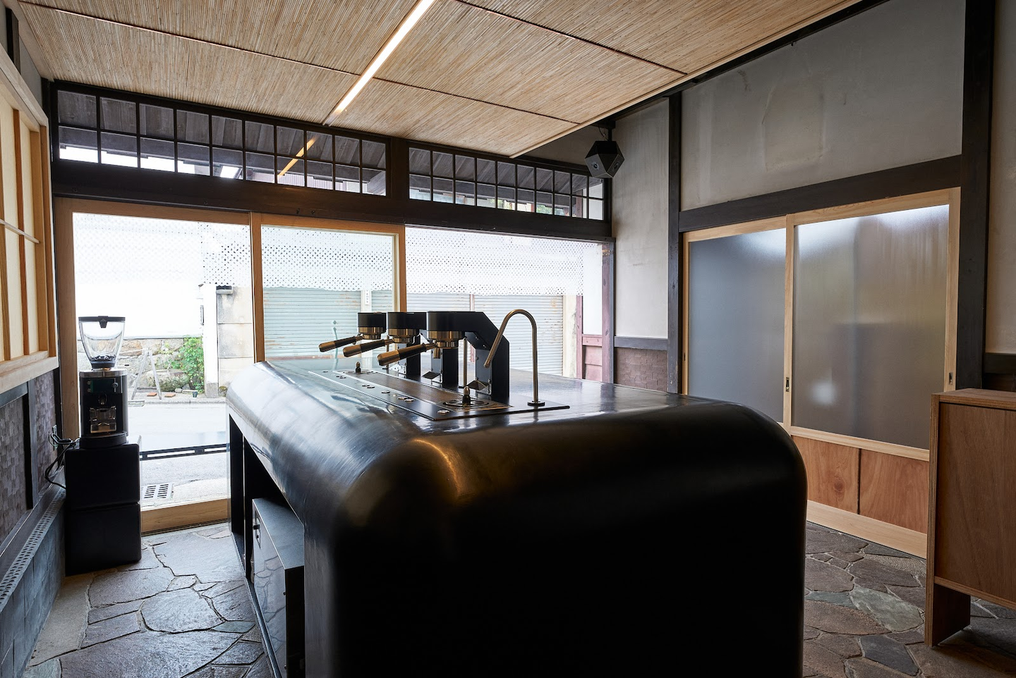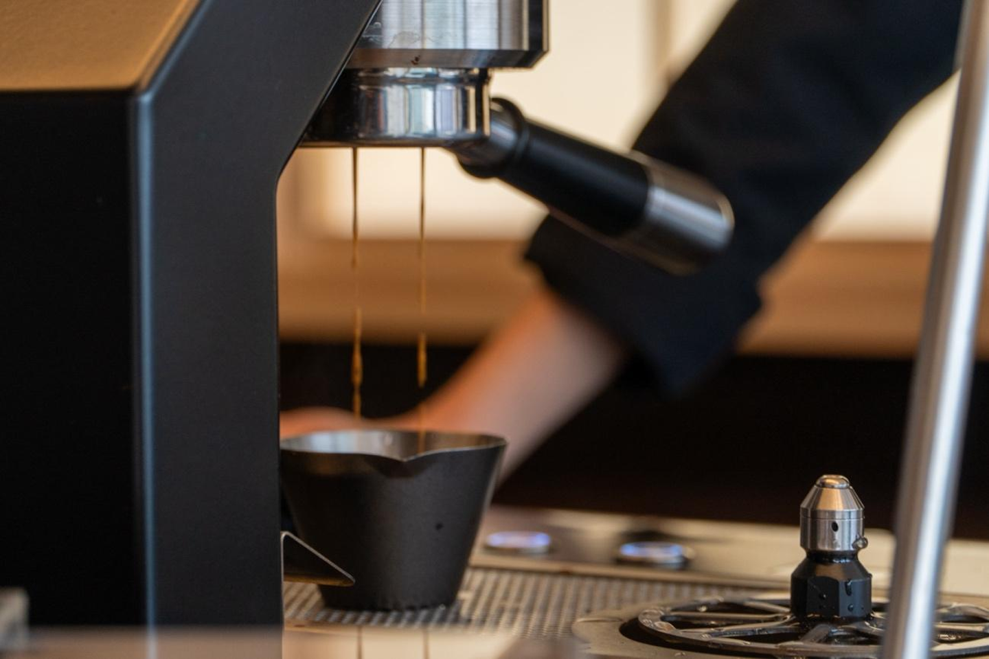 一般的なエスプレッソマシンは大きくて存在感があり、置くだけでその場所の主役になってしまうことが多いもの。氵庵では、空間そのものを味わっていただくため、余計なものは極力省き、空間デザインを阻害しないシンプルなデザインのものを取り入れています。