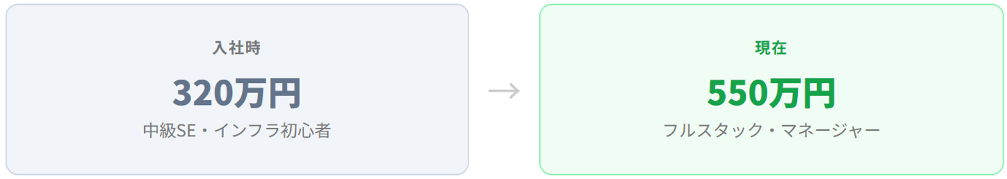 給与については、自分から「どうすればあげていけるか」を相談し続け、付加価値になるスキルを泥臭く習得した結果だと思っています。
