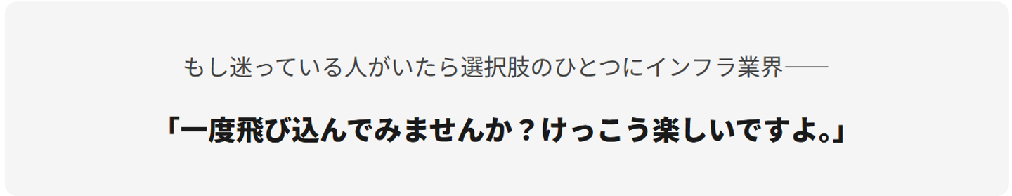 開発からインフラへ行くことを、怖いと思っている人がいるとしたら——。