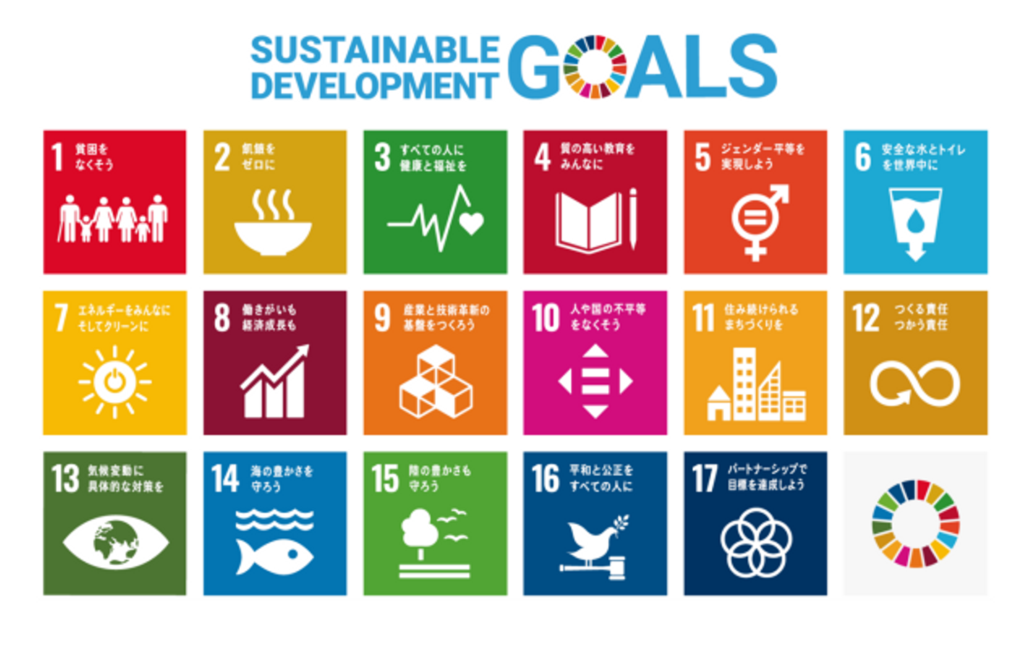 SDGsとは、2030年までに持続可能でよりよい世界を目指す国際目標のこと。17のゴール・169のターゲットから構成され、発展途上国に限らず、先進国自身が取り組むユニバーサル(普遍的)なものであり、日本も積極的に取り組んでいます。