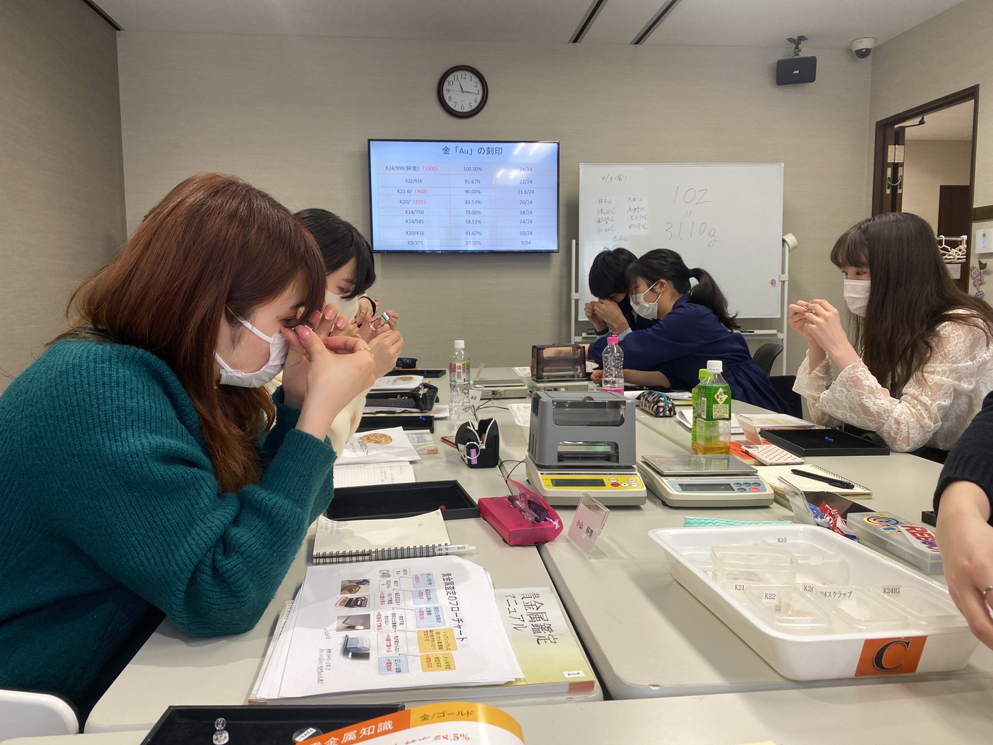 ビジネスマナー、コンプライアンス・セキュリティとリスク、office研修が終わり、先週までは、貴金属・リユ―ス業にまつわる知識や実践研修を行いました。