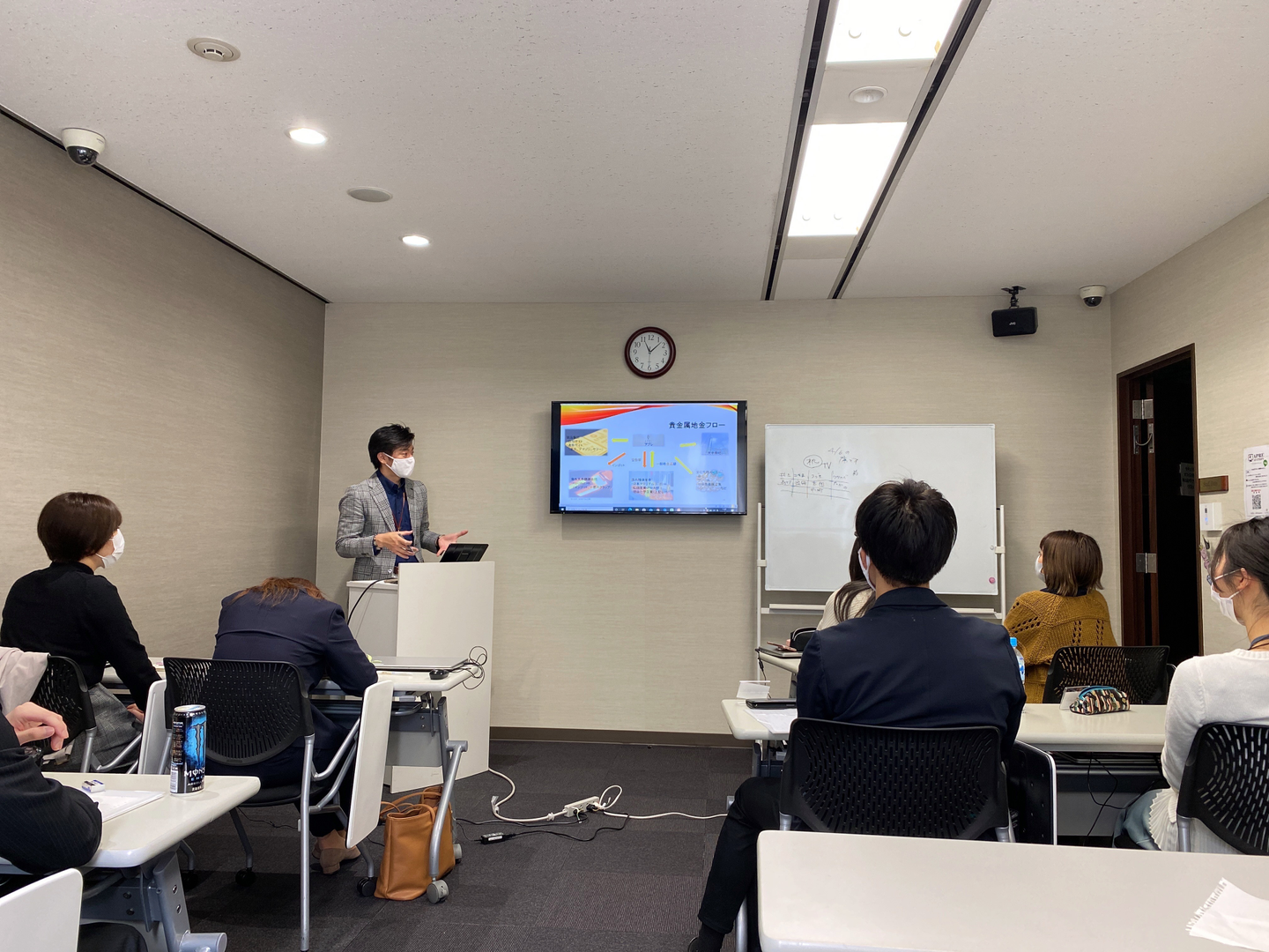 金の市場動向から、事業部説明まで幅広く学習していきます。難しく、初めてきくビジネス用語も沢山出てきたため、そんな時は、翌日のあいた時間でビジネス用語研修をはさんだりもしています。新入社員の方のフォローはしっかりとするので、安心して学ぶ環境を作り込んでいます。