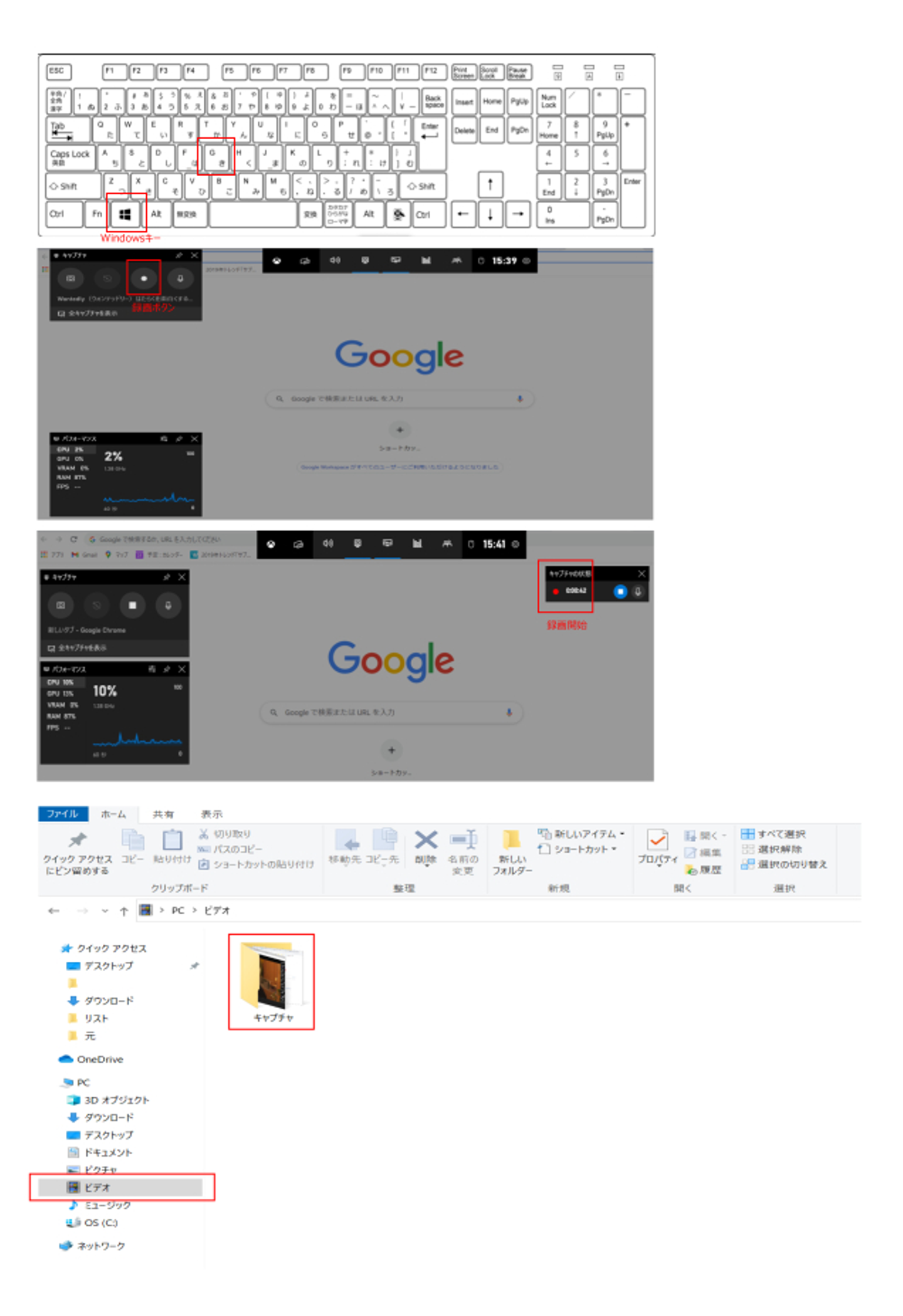 Windows10の機能では『ウィンドウズキー + G 』をクリックすることで、録画ができるんです。 例えばの使い方で、オンラインセミナー等を録画したり、他にも様々な使い方ができそうです。録画されたものは、PCのビデオフォルダへ保存されるので、確認もスムーズです。