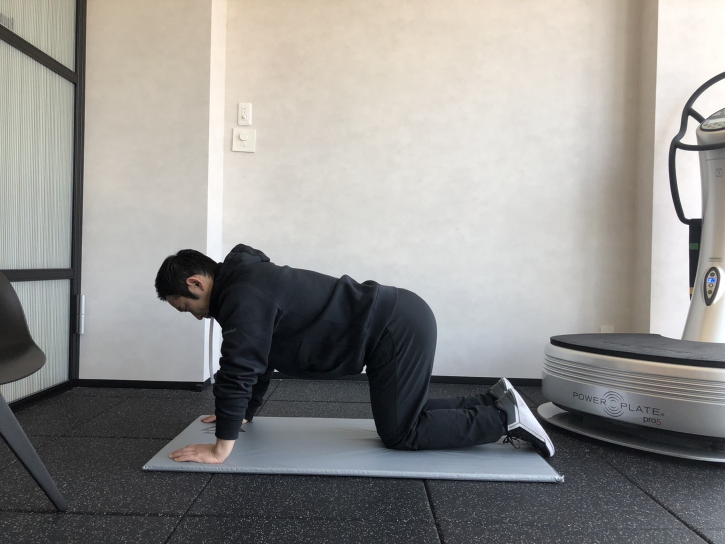 ポイント・四つん這いの姿勢から片足立ちなり腰を浮かせる