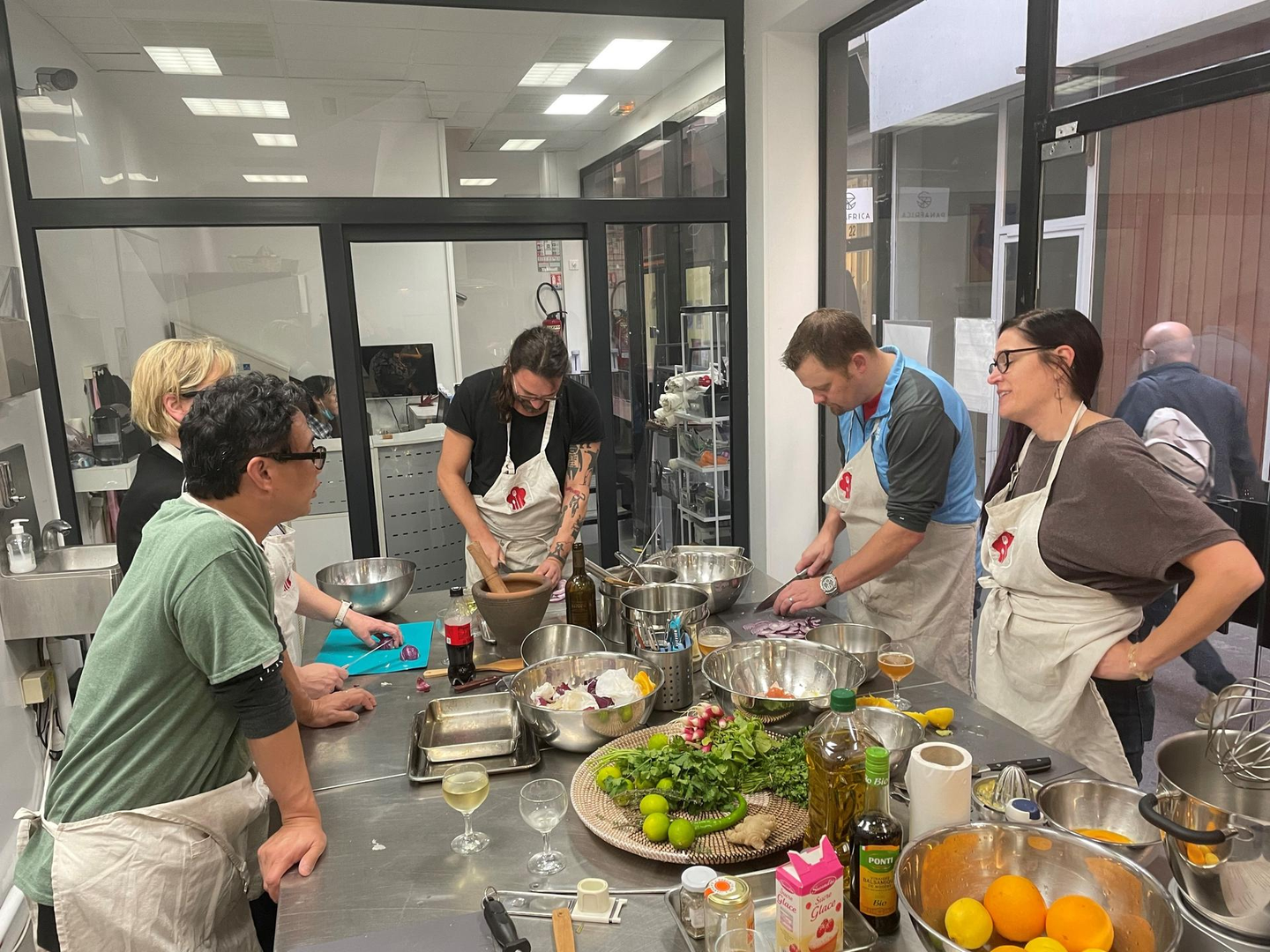 これもグループで大事にしているアクティビティなのですが、チームビルディングとして全員で取り組むイベントがあります。今回パリでは、「お料理教室」でした。全員でフランス料理にチャレンジして、その魅力を探求し、出来上がったものをいただくというイベントです。料理の得意不得意に関係なく、ワイワイ取り組むのは大変面白いものでした。