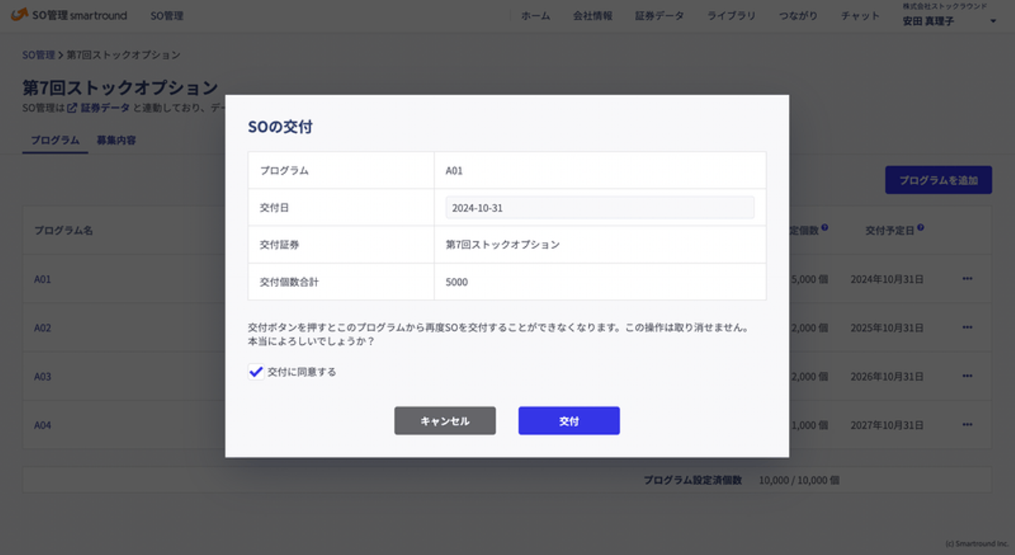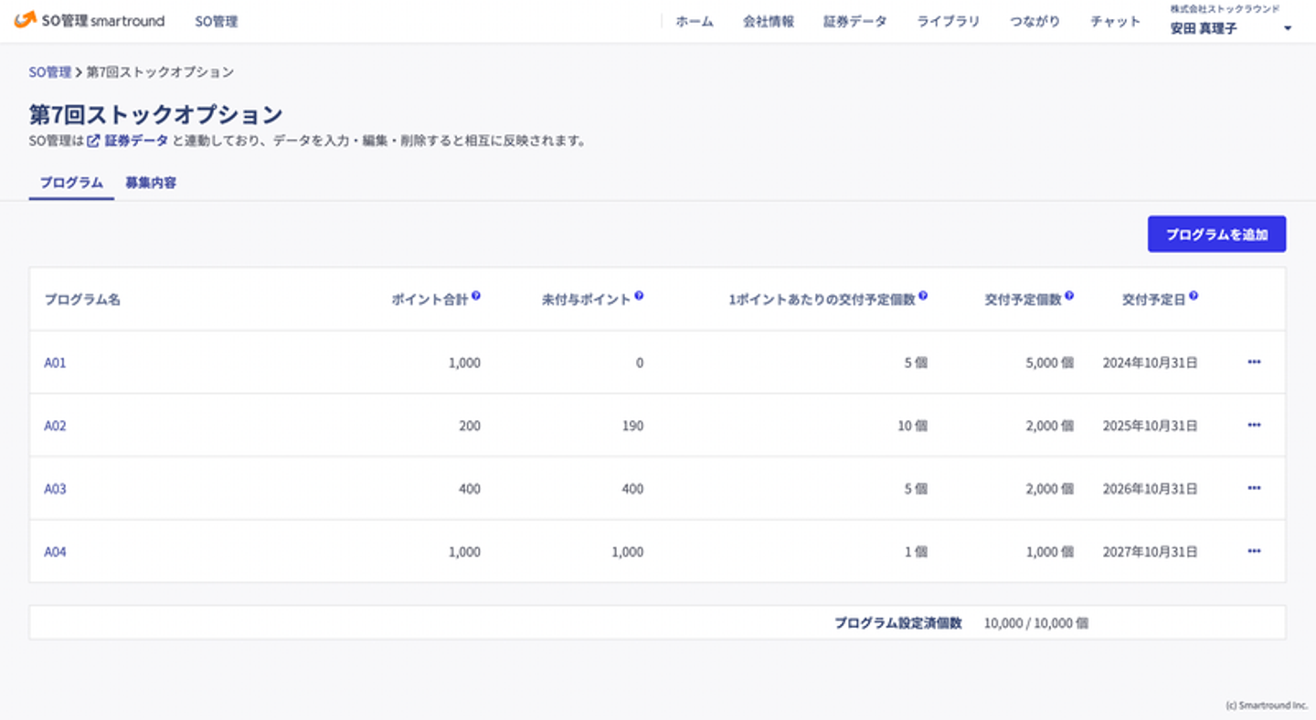 なお、「SO管理smartround」は上場した後でも引き続きご利用いただくことができ、資本政策表を正確に簡単に作成・共有できる「資本政策smartround」との連動等も可能です。