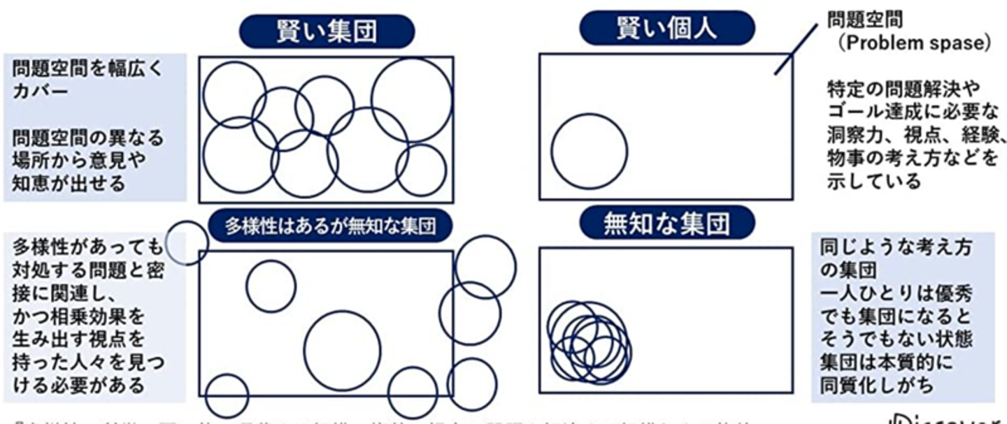 つまり「多様性があればOK!」ではなく、うまく多様な意見を取り入れる努力・スキルが必要ということです。