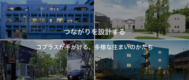 コプラスは、 『人と人がつながるすまい・空間を作る』会社です すまいづくりをベースにし、街づくりや地方創生(団地の再生や地方旅館の再生など)を手がけ、これまでに多くのつながりを作ってきました 当社のすまいやまちづくりは、既に決まっているものではなく、今まだ世の中にないものを新たにカタチにしていくことが当社の仕事です
