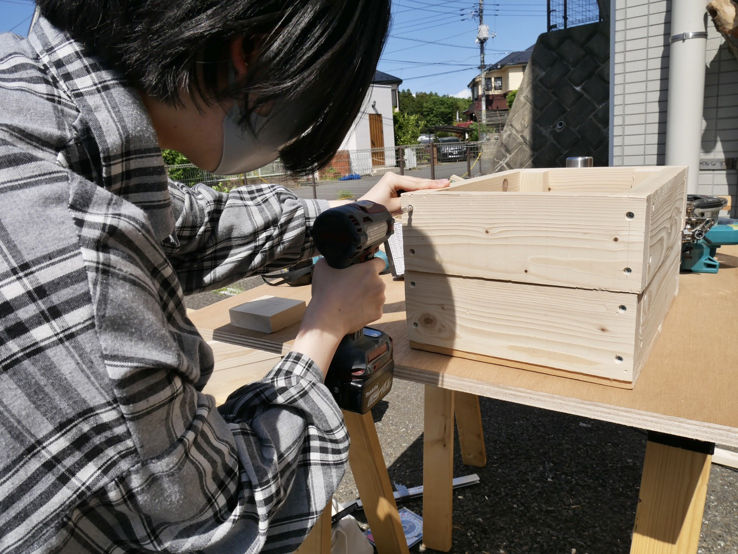 私、久保木も電動ドライバーでビス打ちに挑戦。力加減が難しい…。