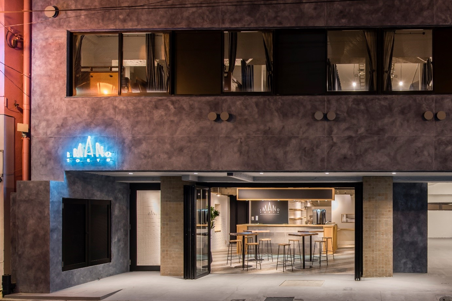 「IMANO TOKYO」は事務所ビルをコンバージョンして1階にカフェ&バー、2~5階をゲストハウスにしました。