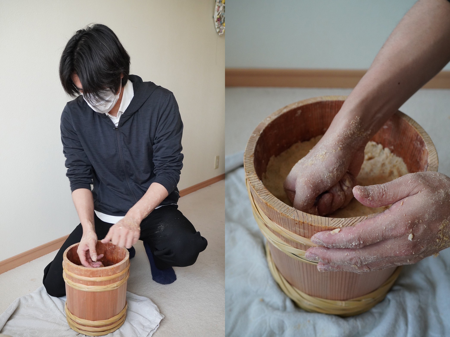 - 味噌は2年前から妻が仕込んでくれていて、今年は自分も初めて味噌作りに参加しました。手作り味噌は愛情込めれば込めるほど美味しくなるそうです。
