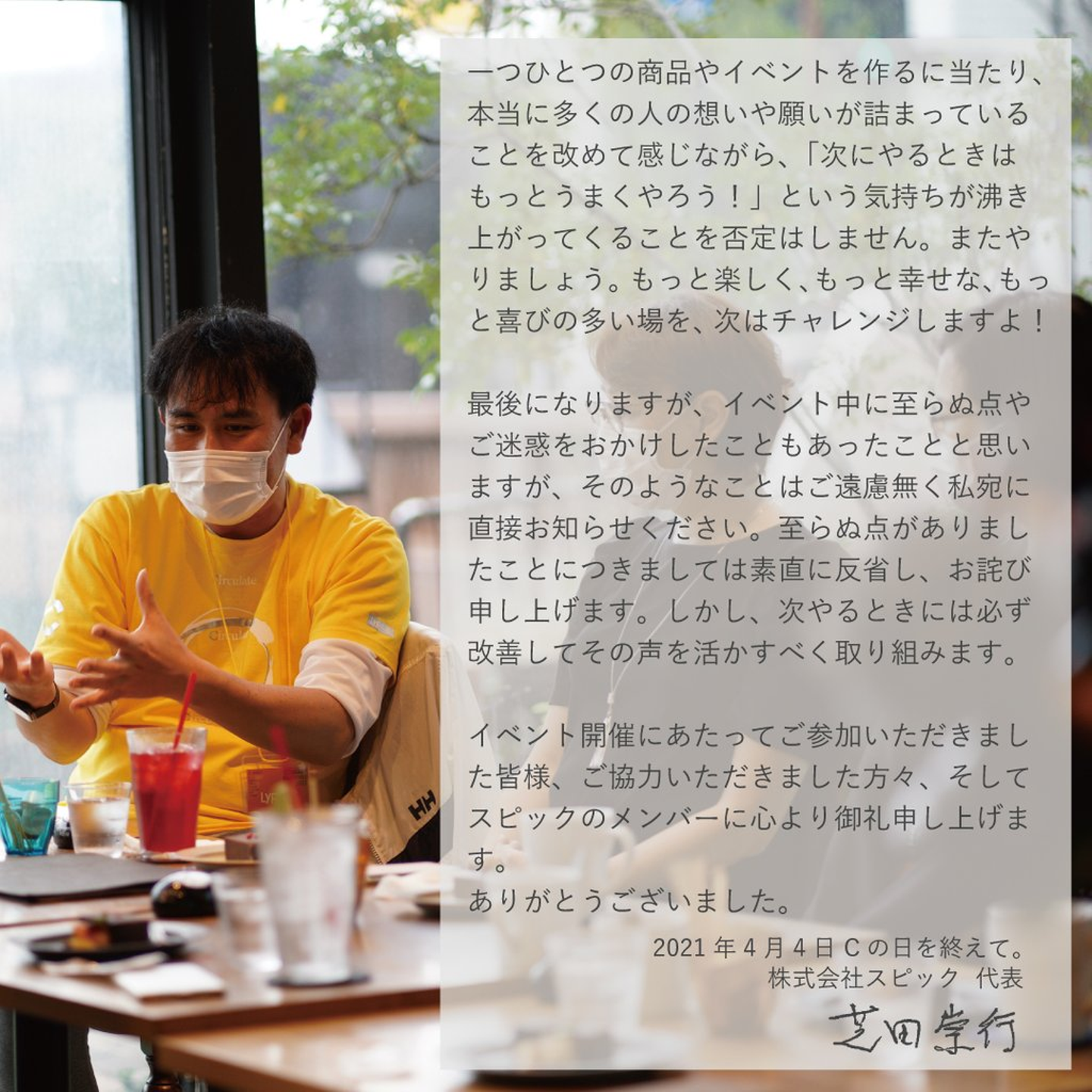 会場を問わず参加頂いた全国のみなさまと一体感が生まれたイベントとなりました。同じ時間を同じ空のもと共有できたことを大変嬉しく思います。