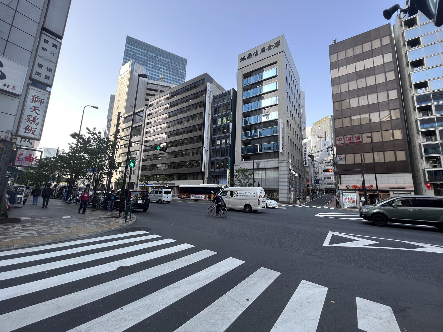 うどん屋さんが入っている茶色い建物(写真右から2番目のビル)がビヨンドワークスの入っているアサヒビルです!