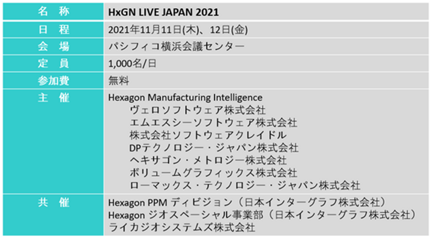 先週2021年11月11日~12日の2日間、Hexagon 傘下の国内グループ企業合同による初めての大規模なユーザーカンファレンスである『HxGN LIVE JAPAN 2021』を、パシフィコ横浜にて開催いたしました。