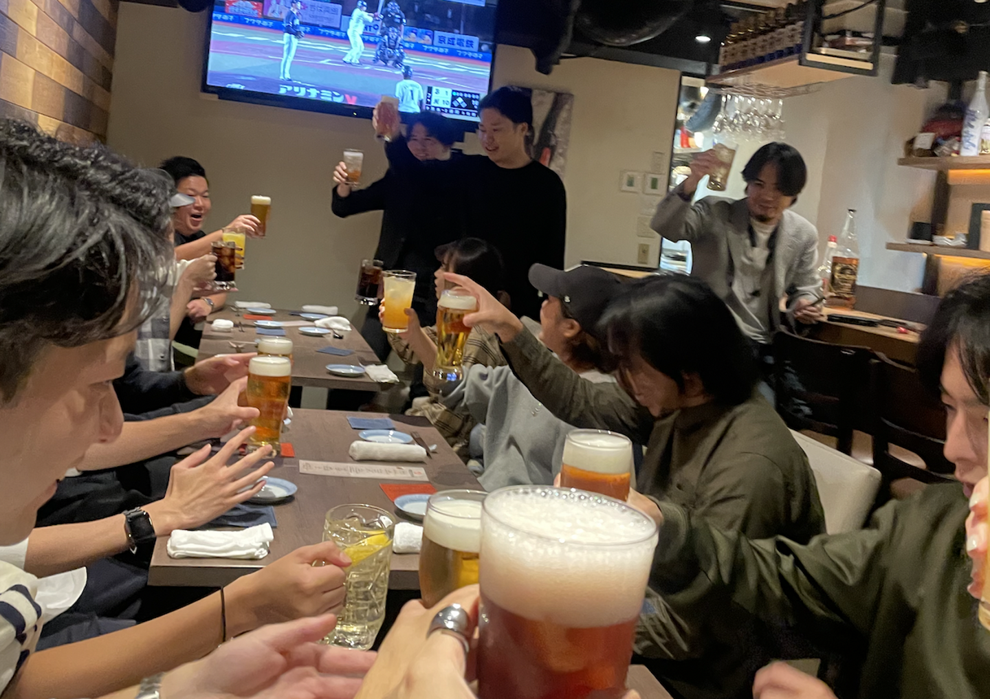 全社会議が終わったら、飲食店に移動してごはん会を行います。お酒が好きなメンバーもRYOMAには多いので、今回はBARを貸し切りました!