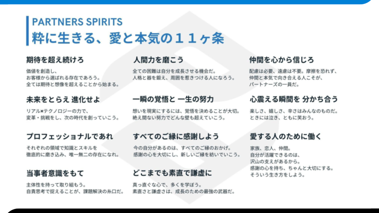 パートナーズの理念であるSPIRITはパートナーズメンバーのあるべき姿を示しています。