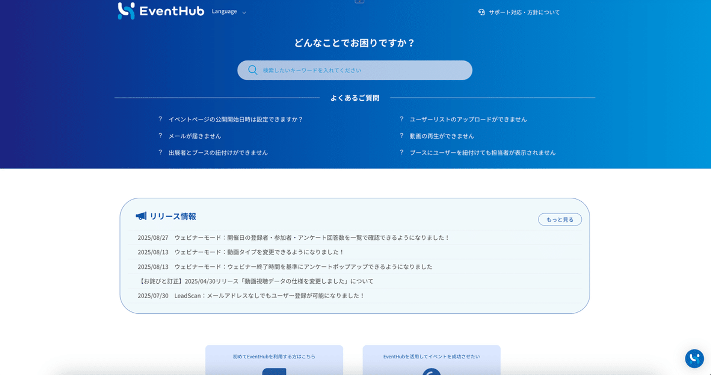EventHub ではヘルプページに Zendesk ガイドを利用しており、既存のナレッジをそのまま学習素材として簡単に連携できる - 運用のしやすさ