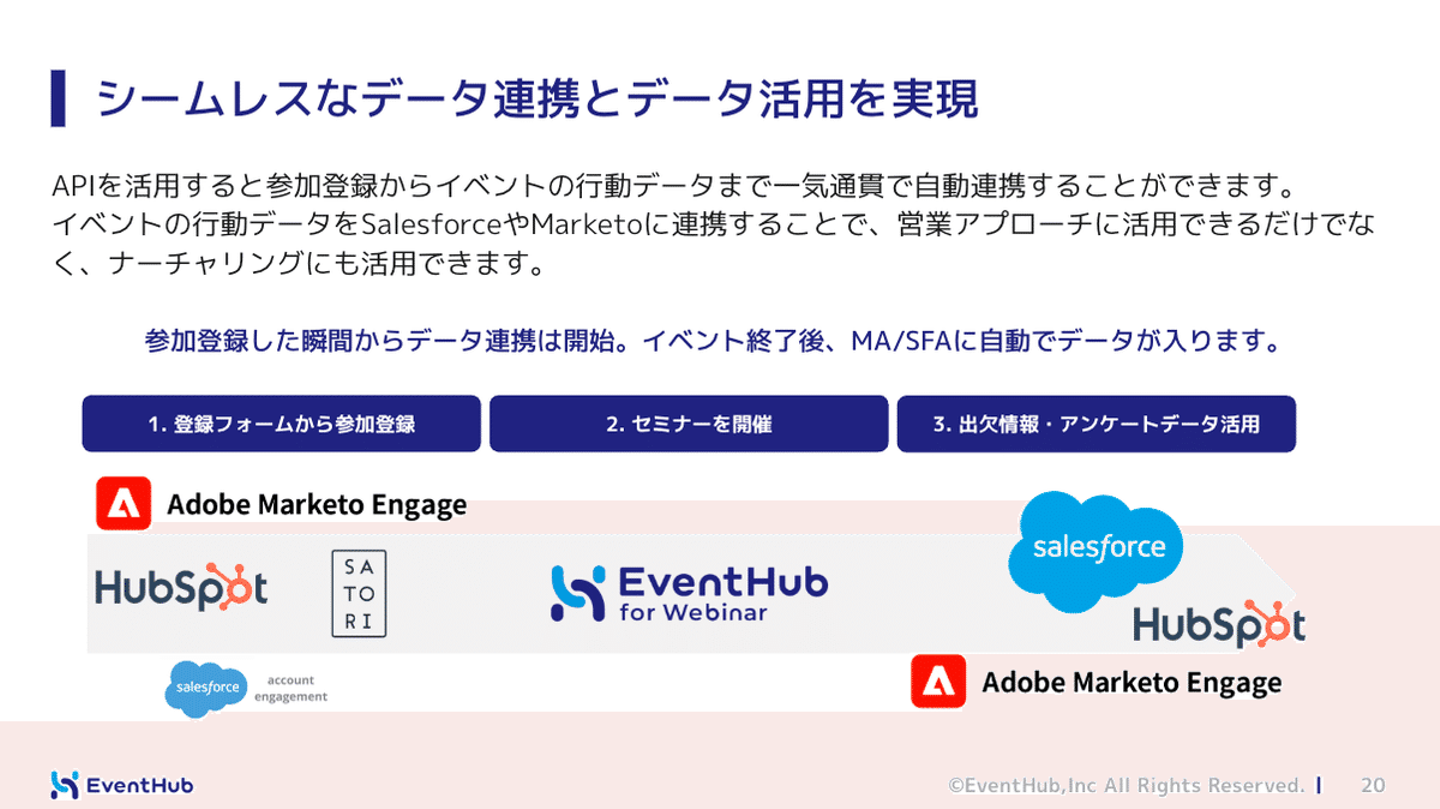 EventHub、日本発のイベントマーケティングプラットフォームで初となるAPI公開 〜第一弾 Adobe Marketo EngageとHubSpotとの連携を開始〜 | EventHub|シェアNo.1 イベントマーケティングプラットフォーム