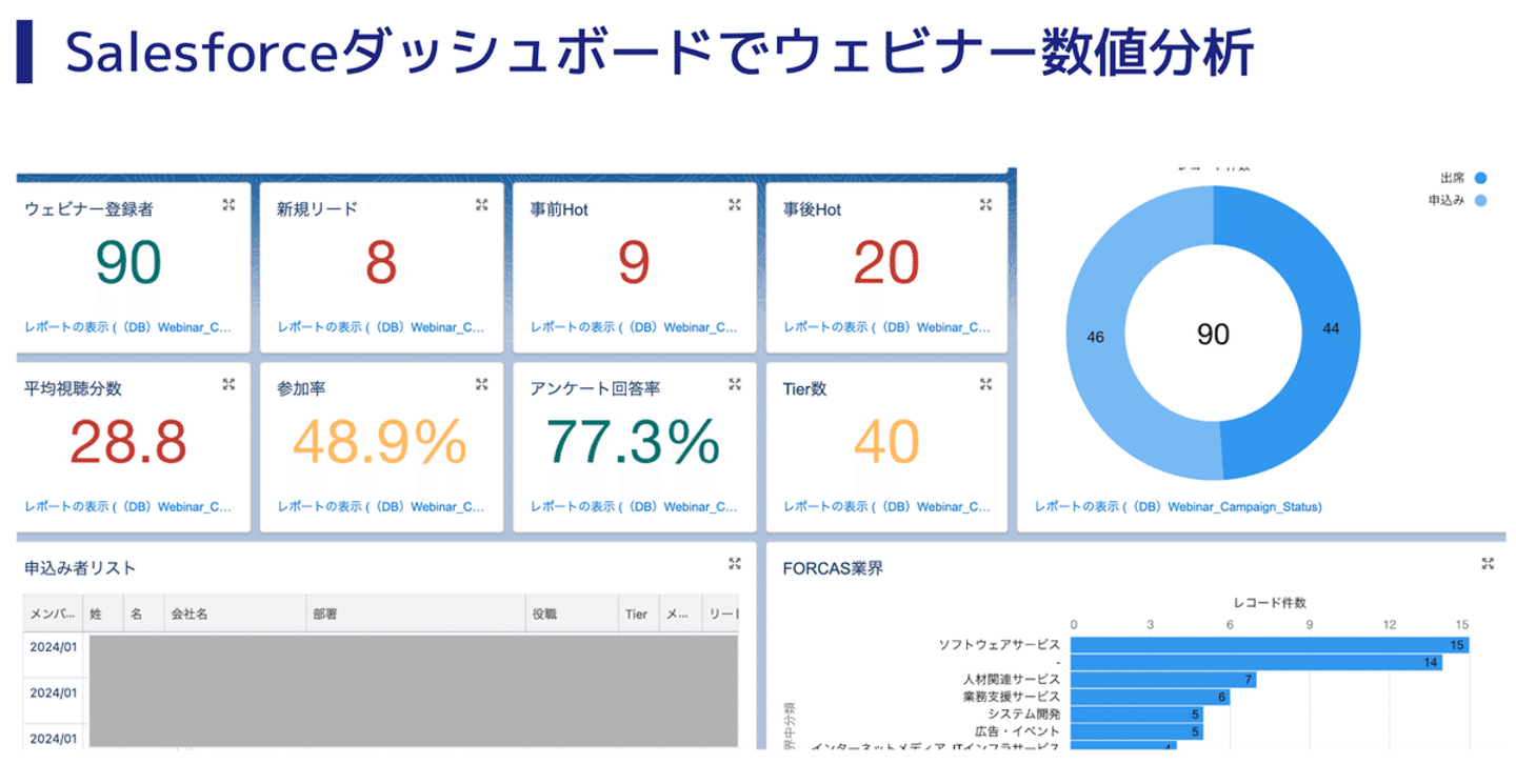 ウェビナーの結果はじめ、当社はSalesforceを使って数値管理しています