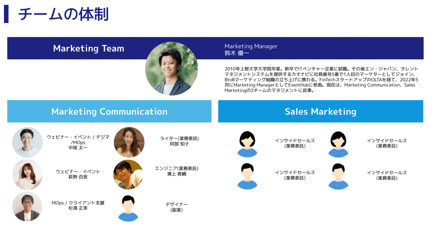 また、これに合わせて、元々のMarketing Team側は、Marketing Communication Team(所謂、マーコムですね)と変更しました。今後、よりお客様とのブランドコミュニケーションを大事にしていきたいので、チーム名を変更しました。