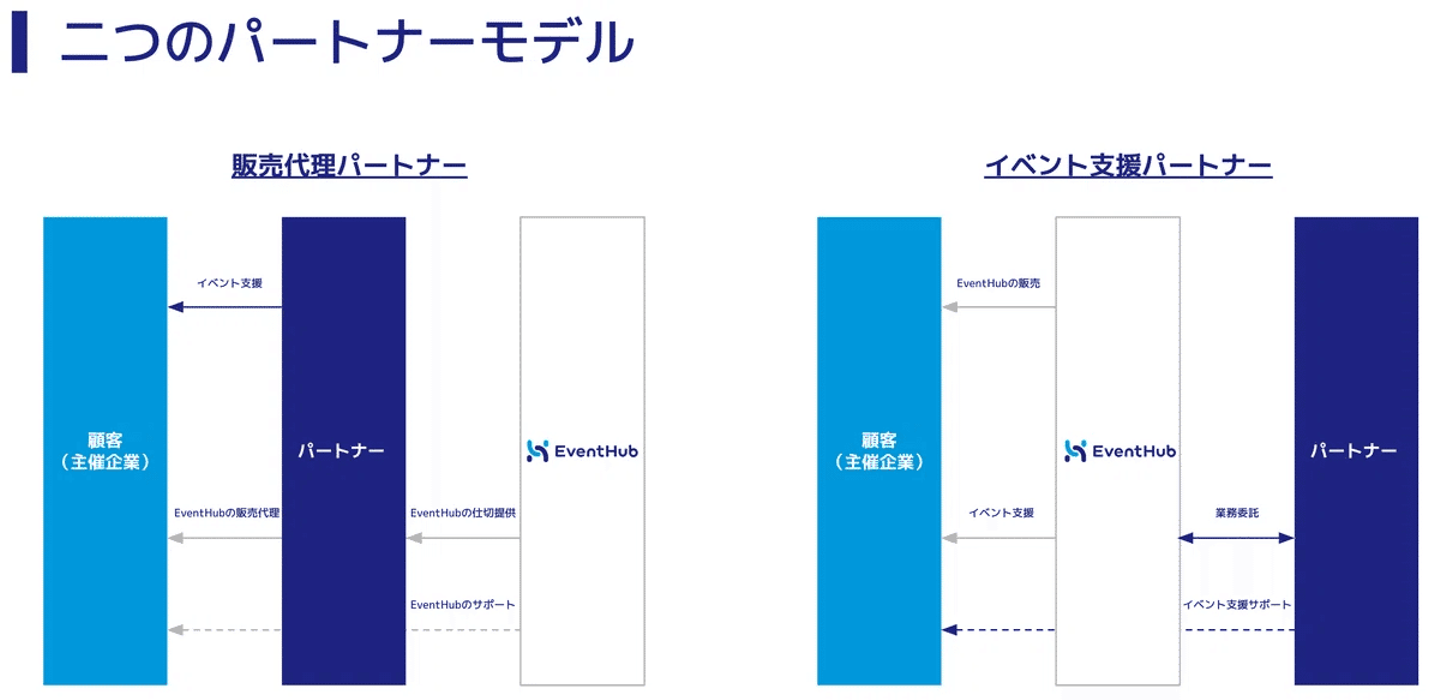 弊社のパートナーモデルは「販売代理パートナー」と「イベント支援パートナー」の2つ。