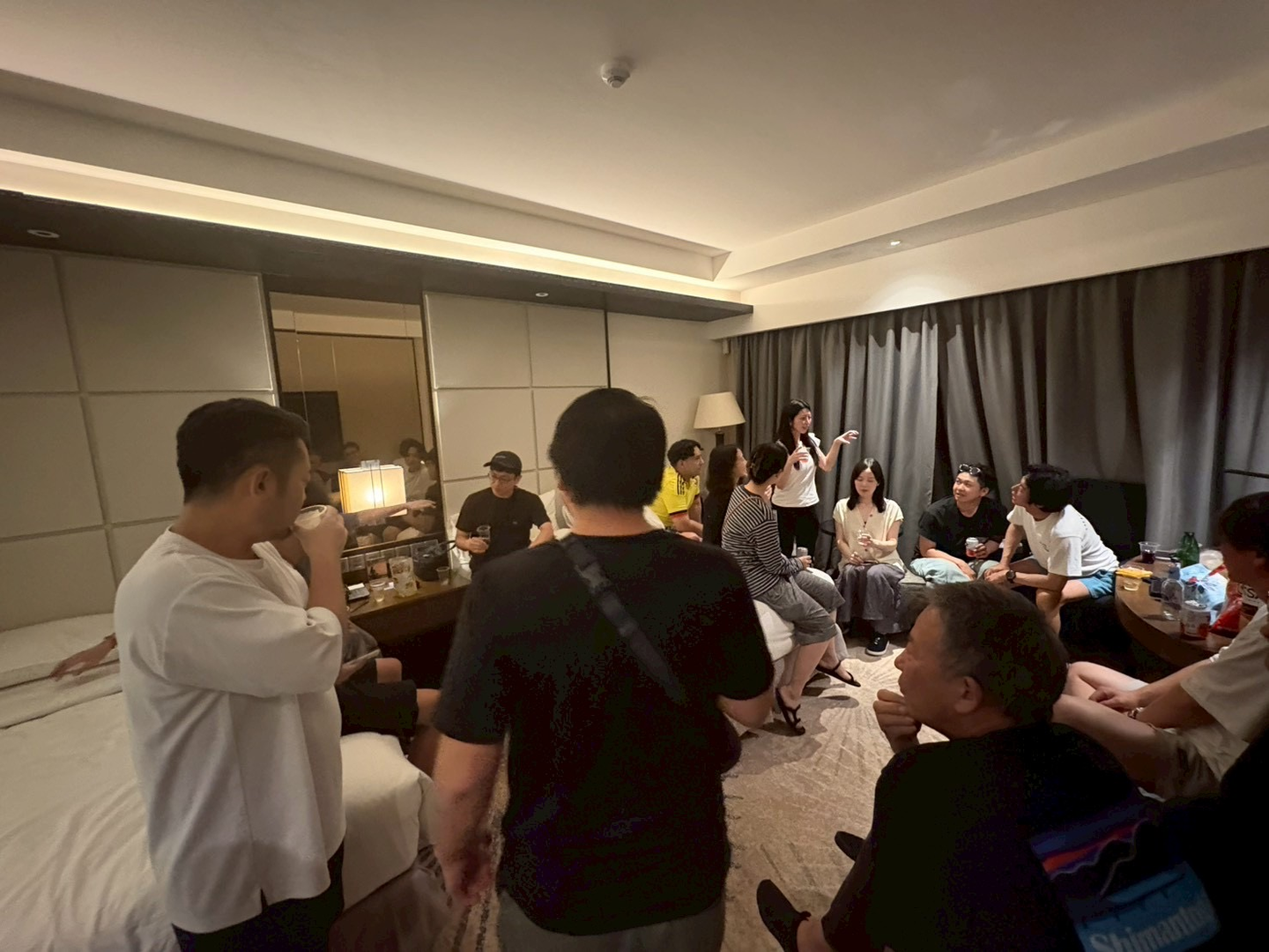研修旅行の夜は有志で一部屋に集まり飲む恒例行事