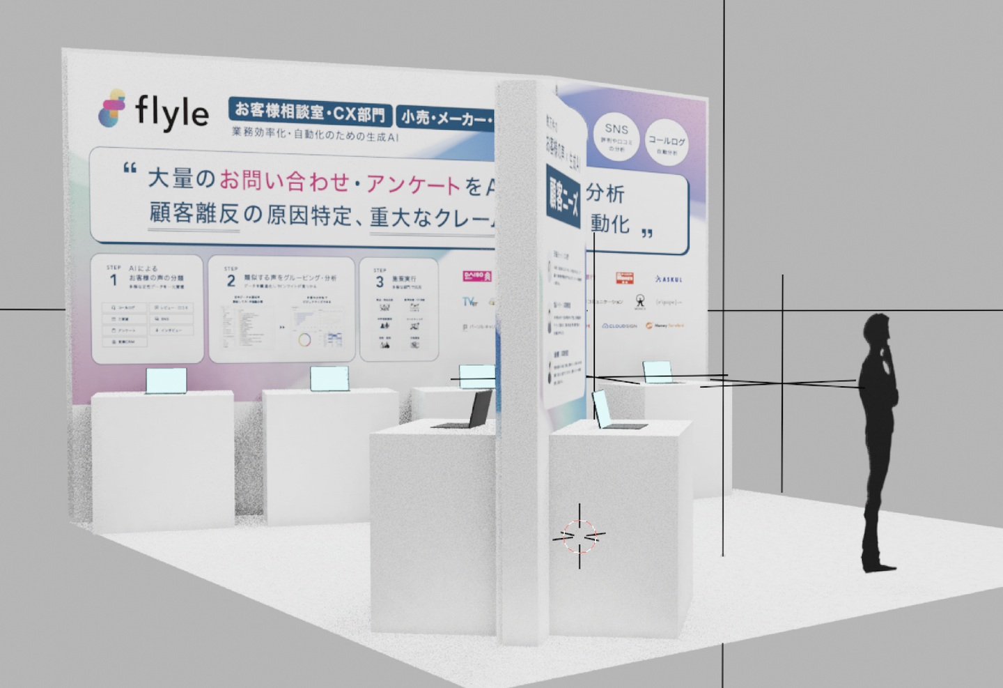 ―入社後、どのようなデザイン業務を担当していますか。 Flyleの機能開発や展示会の造作、LPのリニューアルなど多岐にわたります。特に機能開発ではゼロから機能を作ることもあり、顧客の課題を正しく理解し、アウトカムを提供できる最適な解決策を導いていく必要があります。この一連のプロセスはプロダクトデザイナーにとって、頻繁に経験できることではないと思います。ゼロイチで機能を考えることはチャレンジングでしたし、リリース後のお客様の反応からも仮説が正しかったのか・次にどうすべきかなどを学ぶことができました。