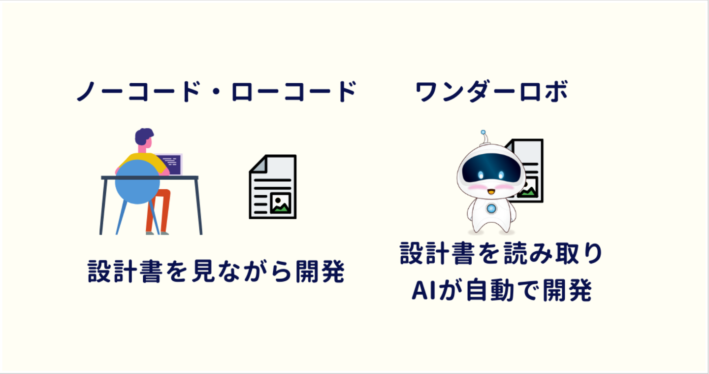 一方ワンダーロボでは、設計書を作成したら、そのままAIが設計書を読み取り、自動で作成いたします。