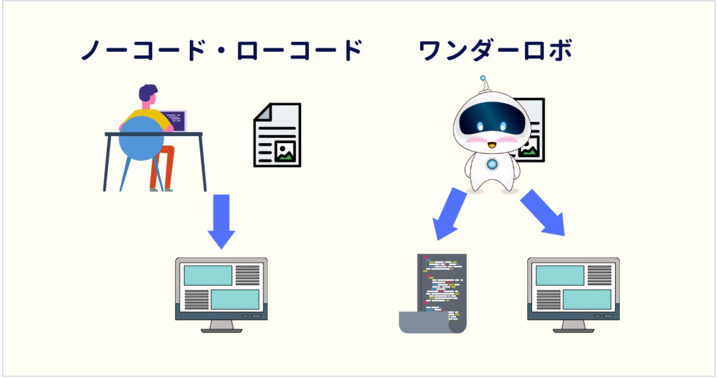 ワンダーロボは、システム開発型のノーコード・ローコードプラットフォームです。